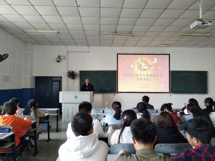 3月19日下午,由球盟会分党校举办的2019年上半年入党积极分子培训班开班典礼暨第一次培训在第八教学楼4-3教室顺利举行。球盟会党校副董事长彭雪贵、公司党委副书记兼分党校董事长邓辉出席了本次开班典礼。此次活动由球盟会学工办主任马忠石主持。