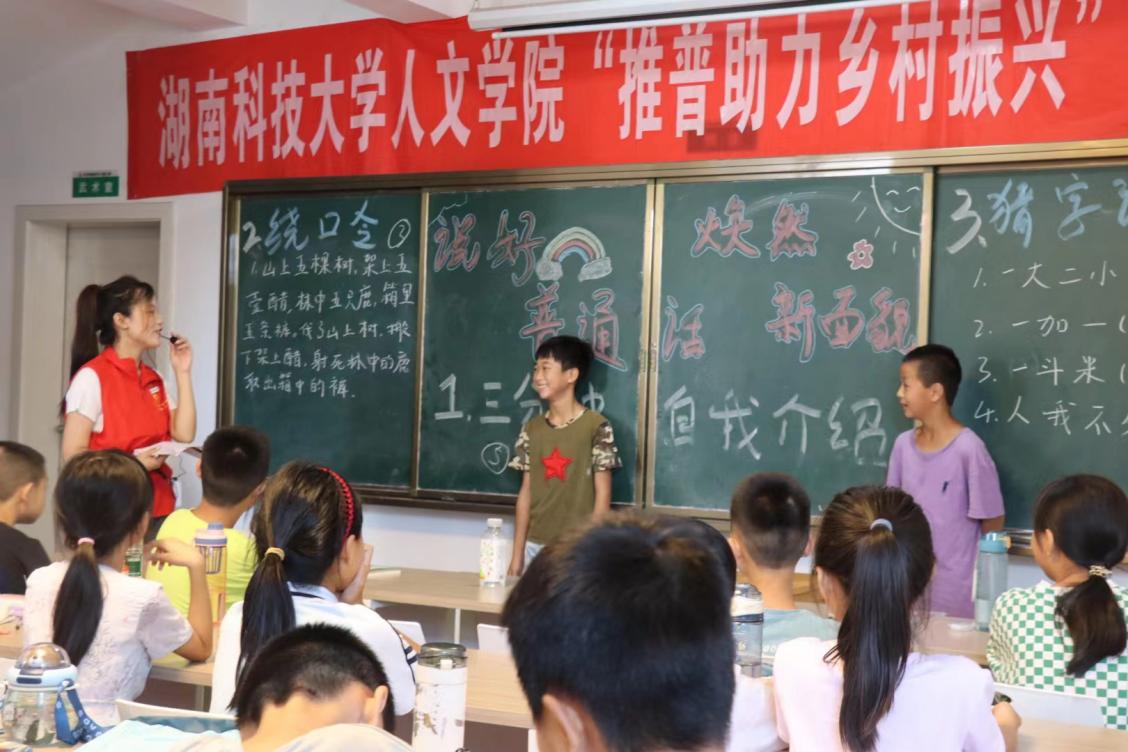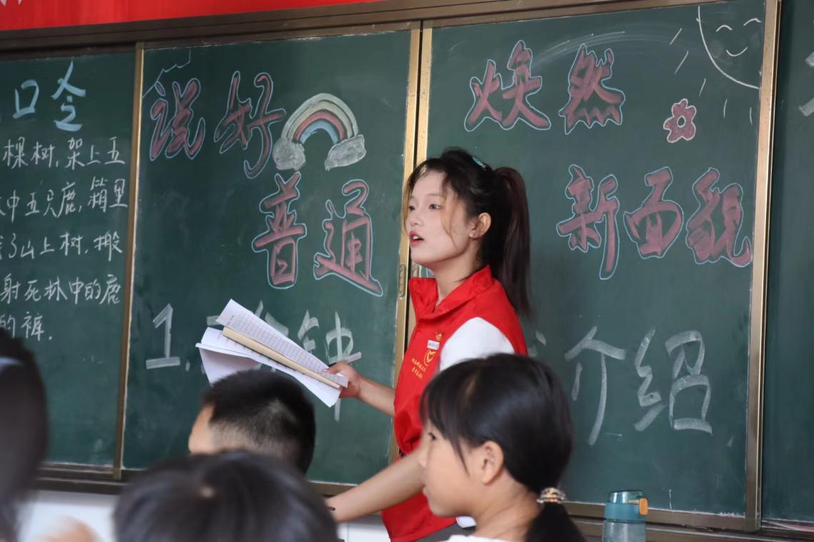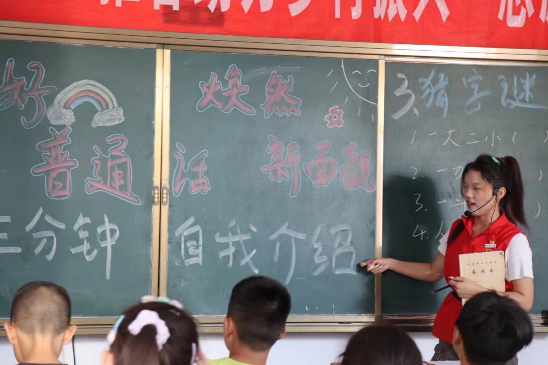 7月9日上午,株洲攸县石羊塘镇儿童之家传来了一阵又一阵的鼓掌声,四年级孩子们的欢笑声此起彼伏地传来。走进教室一看,是志愿者龙杨慧在教孩子们读绕口令。“发扬国风,从说中国话起;说中国话,从普通话开始。”为了圆满完成推普助力乡村振兴的志愿服务目标,在乡村大力推广普通话,传承优秀传统文化,为此球盟会“三下乡”实践团队在暑期公司展开三下乡特别课堂第三期:说好普通话,焕然新面貌。