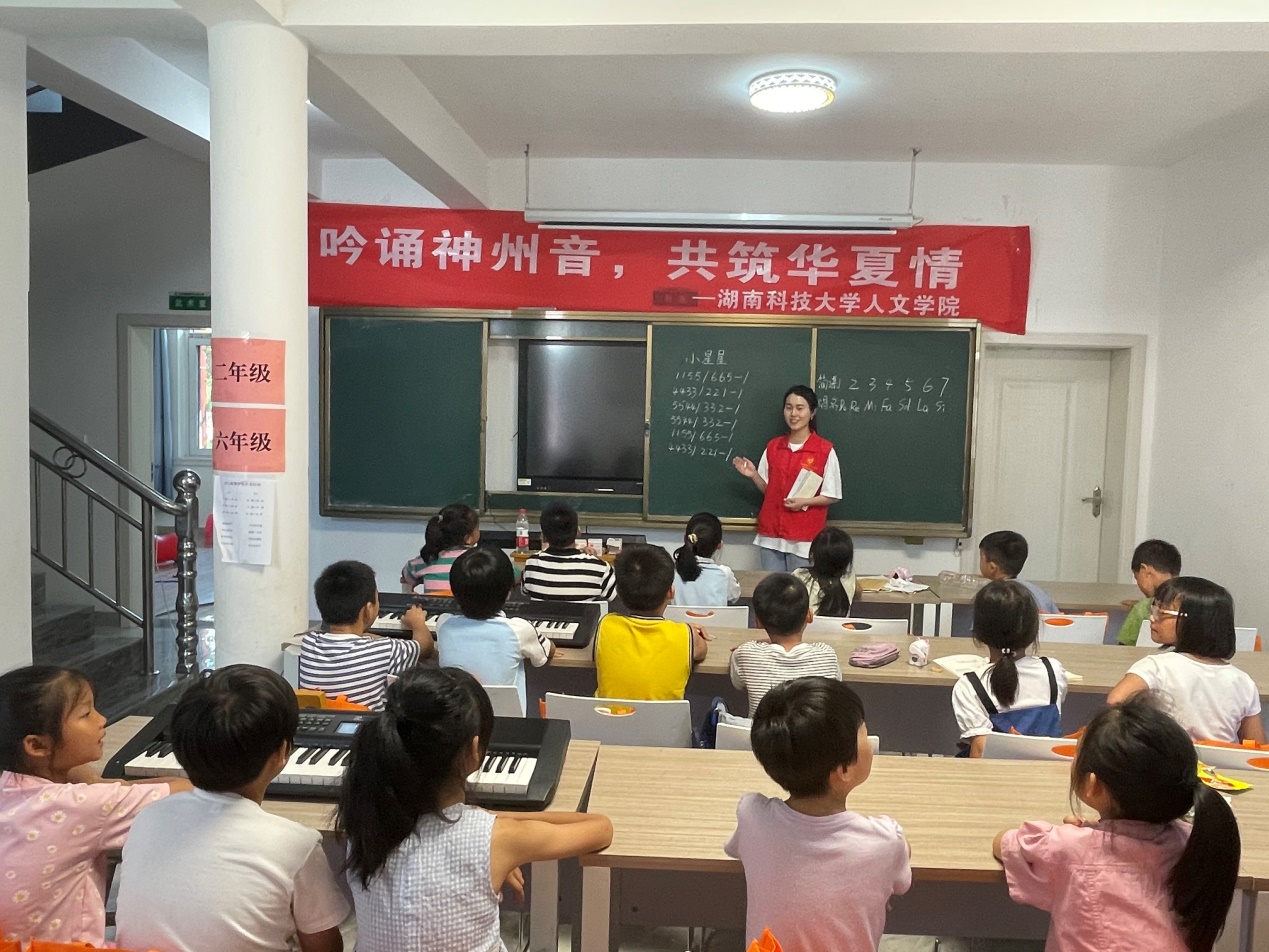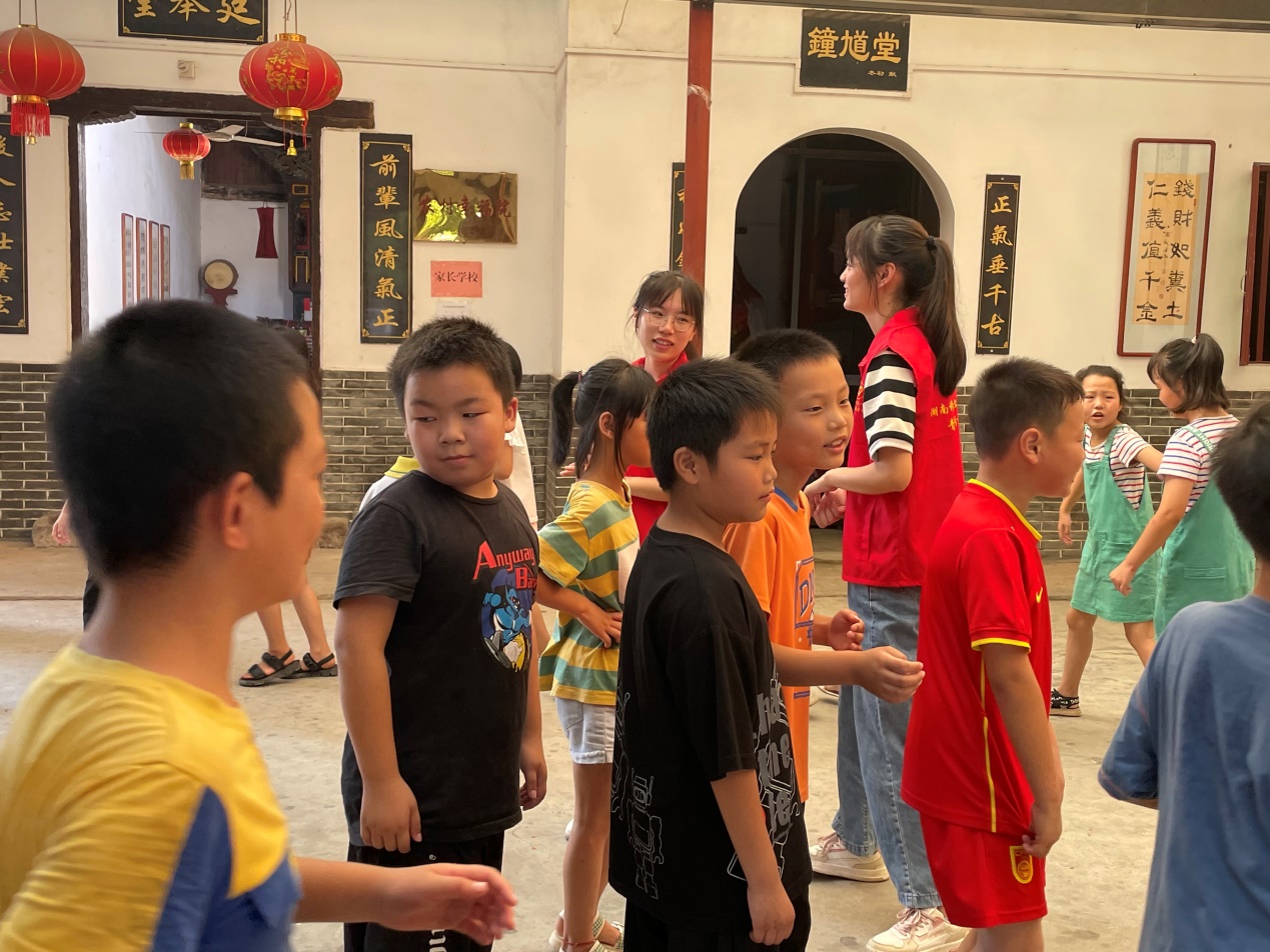 为加强青少年儿童思想道德与文化素质建设,关心下一代成长,球盟会暑期“三下乡”社会实践团队于株洲攸县石羊塘镇谭家垅社区开展为期十天的支教活动。实践团队在“赤脚教授”夏昭炎及其老伴杨莲金的指导下,充分考虑孩子们的兴趣爱好和学习进度,讨论设定了丰富的课程。除语文、数学、英语三门主课外还包括音乐、美术、书法、科学、历史、体育、健康教育等课程,力求通过打造多彩课堂来塑造德智体美全面健康发展的新时代优秀人才。