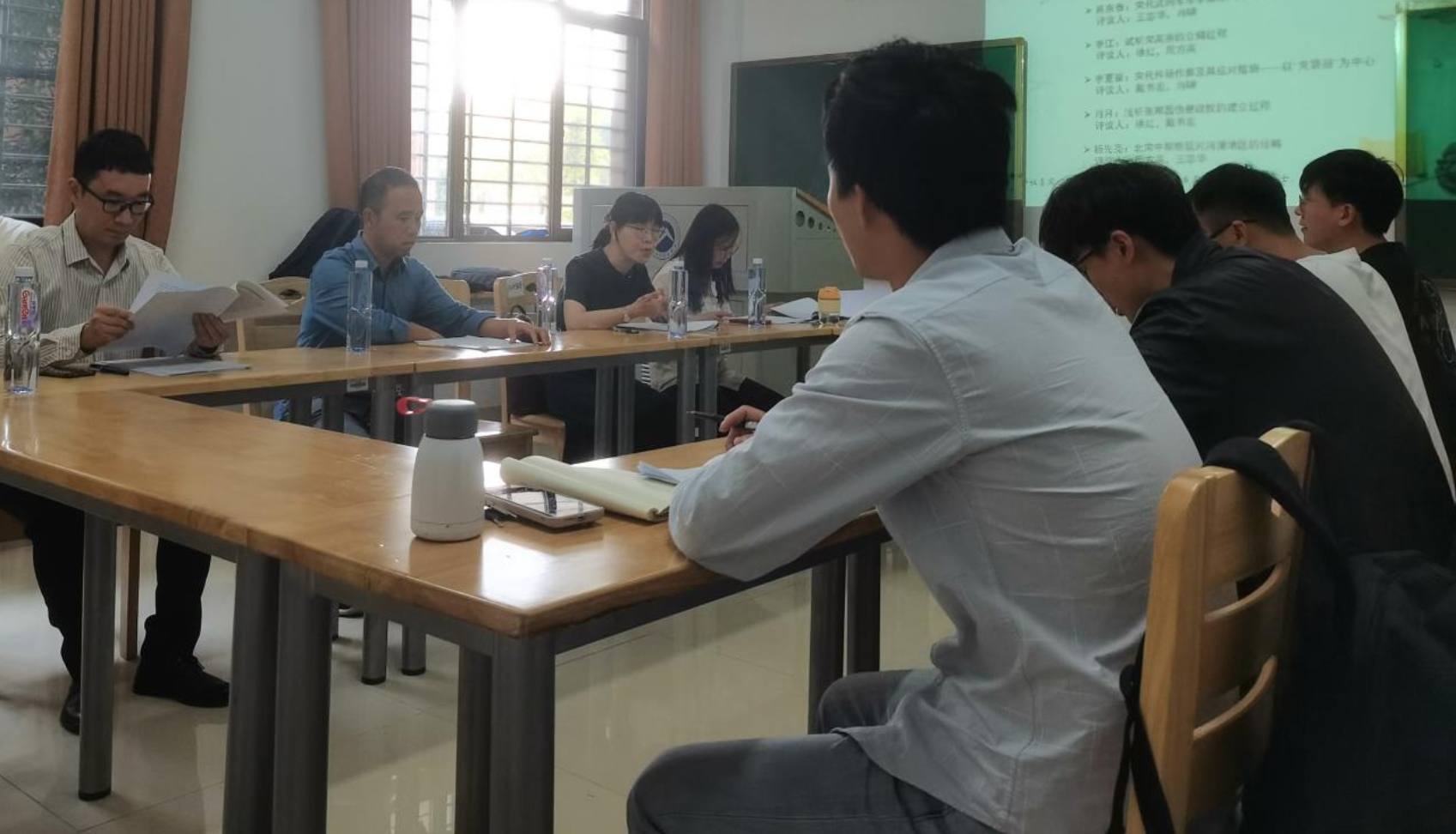 蒋宗泰的论文《宋代武冈军军学重修问题初探》主要论述武冈军军学的重修状况。评议老师指出,论文选题有新意,值得深入探讨,但论文内容安排缺乏逻辑性,文中引用了不少地方志的史料,需尤其注意这些史料的版本、错字现象。最后老师们建议从整个宋代的文教政策层面考虑武冈军军学的重修问题,不能仅仅就事论事。