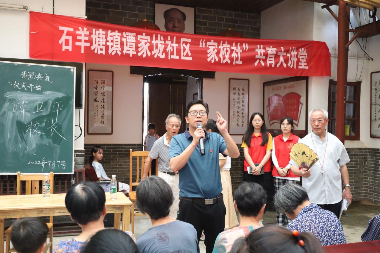 家校社共育,访帮扶一体。攸县家校社共育宣讲师、鸭塘铺中学董事长谭卫平出席典礼并发表讲话,他对当下家庭、公司与社会之间的儿童教育问题进行详细解读,多次强调要关注儿童的身心健康,并指出“家校社”共同培育的重要性与必要性。