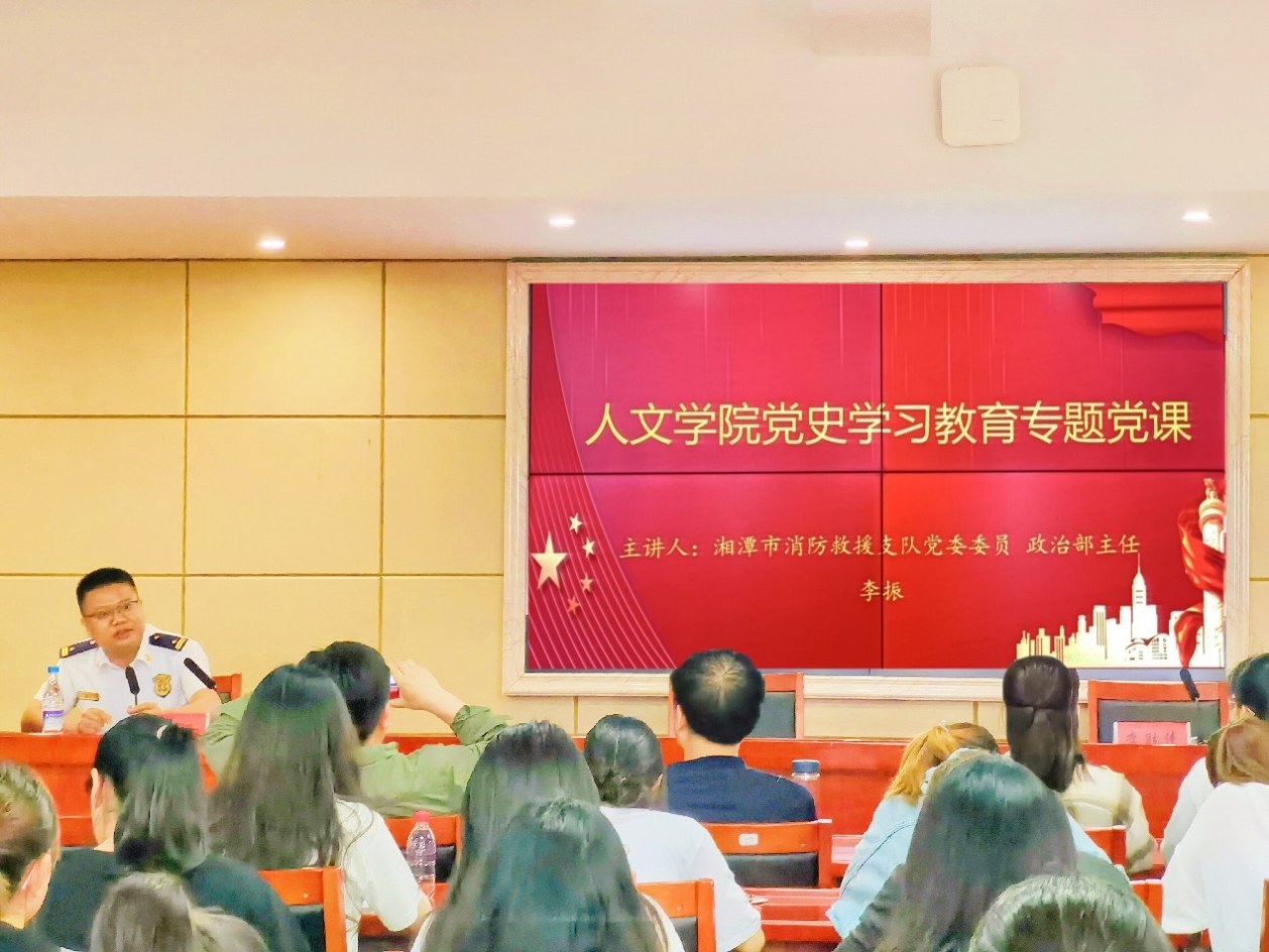 5月25日下午,湘潭市消防救援支队党委委员、政治部主任李振同志应邀为球盟会师生党员讲授专题党史课。