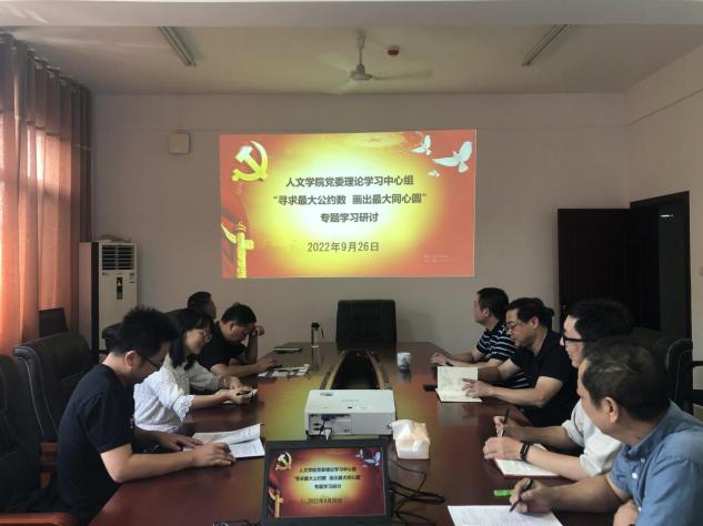 2022年9月26日,球盟会公司党委理论学习中心组在立言楼B505室开展“寻求最大公约数 画出最大同心圆”专题集中学习,集中学习由曾志东书记主持,全体党委委员和党政办负责同志参加了本次集中学习。