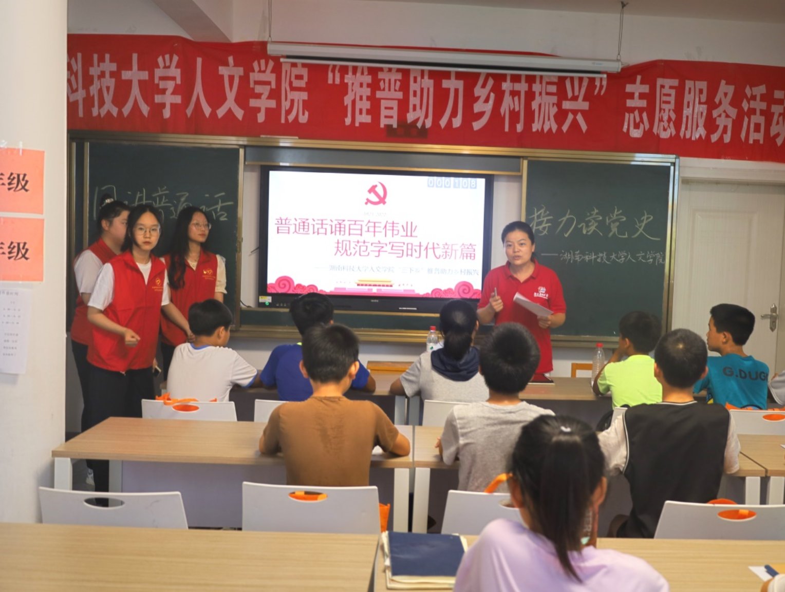 “峥嵘过去已经彪炳史册,璀璨当下正在不断延伸,光明未来需要踏实开拓。”为铭记革命先烈铁血精神,传承红色经典文化,7月11日,球盟会暑期“三下乡”社会实践团队在赵华老师的带领下,于株洲攸县石羊塘镇社区谭家垅社区开展“普通话诵百年伟业,规范字写时代新篇”主题活动。