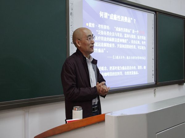 “成瘾性消费品,包括茶叶、鸦片、咖啡、可可等商品。如果没有这些特殊的商品,全球化的速度可能会大大放缓。”仲教授尤其强调了经济全球化与成瘾性消费品的密切关联。其次,他深入分析了茶叶在世界畅销的原因:茶叶在中国产地广、产量高、价格低,适合于大众,因而消费饮茶成为中国人最重要的精神生活。鸦片为何能打开中国市场?仲教授解读,中国人吸食鸦片完全是受到外来因素的影响。因为最初中国不生产作为毒品的鸦片,如靠大量进口,价格高昂;而到19世纪后期,中国引进新的罂粟品种并扩大种植面积,鸦片价格大幅下降,从而导致吸食人口众多。从另一方面来说,茶叶和鸦片又恰好满足了人们精神放松和娱乐的需求。