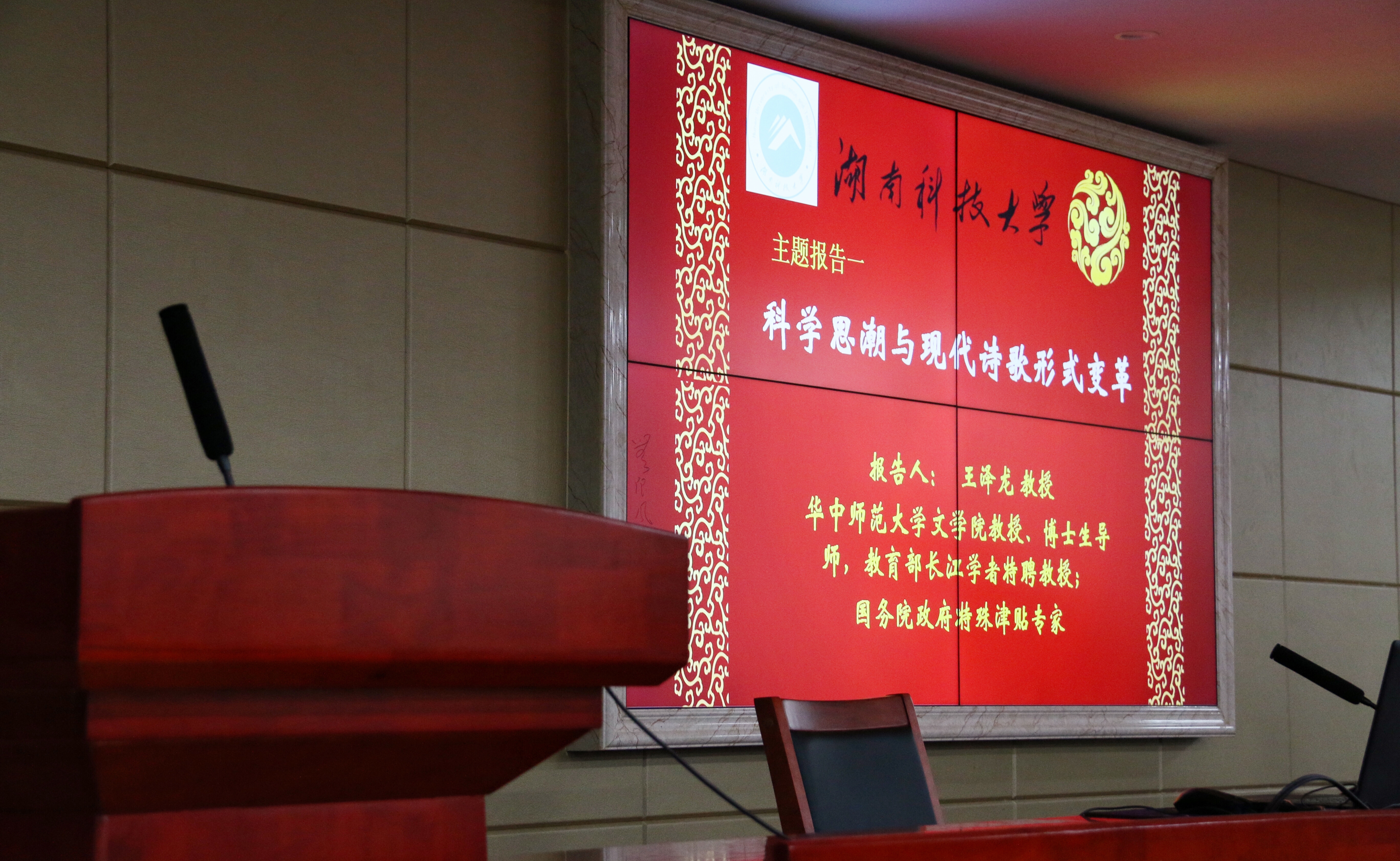 11月18日下午,湖南省第十届研究生创新论坛“人文学术创新与文化传承”分论坛主题报告之一在球盟会立言楼B4-1教室举行,长江学者、华中师范大学文公司王泽龙教授应邀来公司讲学,为公司师生带来一场题为《科学思潮与现代诗歌形式变革》的讲座。讲座由球盟会研究生院与球盟会共同举办,吴投文教授主持讲座。球盟会经理刘奇玉教授、刘郁琪副教授、胡志明博士、杨石峰博士等出席讲座,来自球盟会、教育公司、马克思主义公司、外国语公司等的研究生及部分本科员工到场聆听讲座。