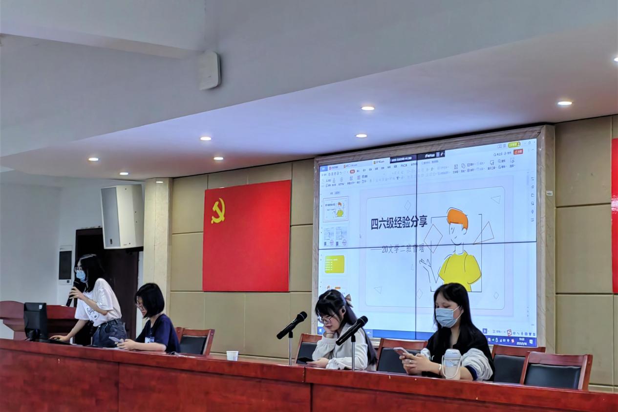 本次交流会邀请了20级汉语言文学二班曾瑶、20级新闻二班林游、21级汉语言文学三班尹伊达、21级汉语言文学四班文蓉作经验分享。四位同学分别从四六级的重要性、英语学习的方法、主要题型复习、考前复习技巧、答题技巧与应考心态等多个方面进行交流分享,帮助同学们熟悉四六级考试题型以及学习备考方法,提高备考能力。