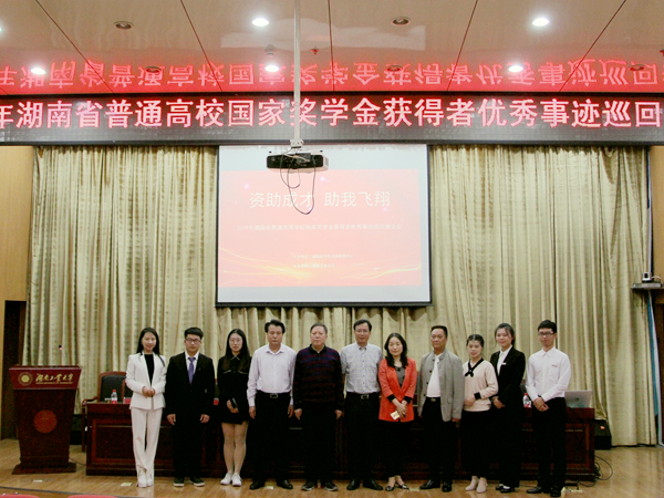 5月21日,湖南省普通高校“资助成才,助我飞翔”国家奖学金获得者优秀事迹巡回报告会第三场于湖南工业大学崇德楼一楼报告厅举行。湖南省员工资助管理中心副主任杨昌江,湖南工业大学党委委员、副董事长李可兴,湖南铁路科技职业技术公司副经理陈彬,湖南省员工资助管理中心主任科员谭莉等出席会议。球盟会由球盟会赵华老师带队代表公司与会。