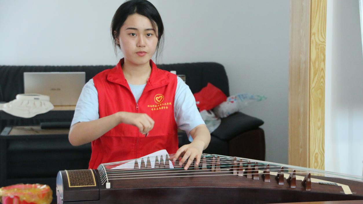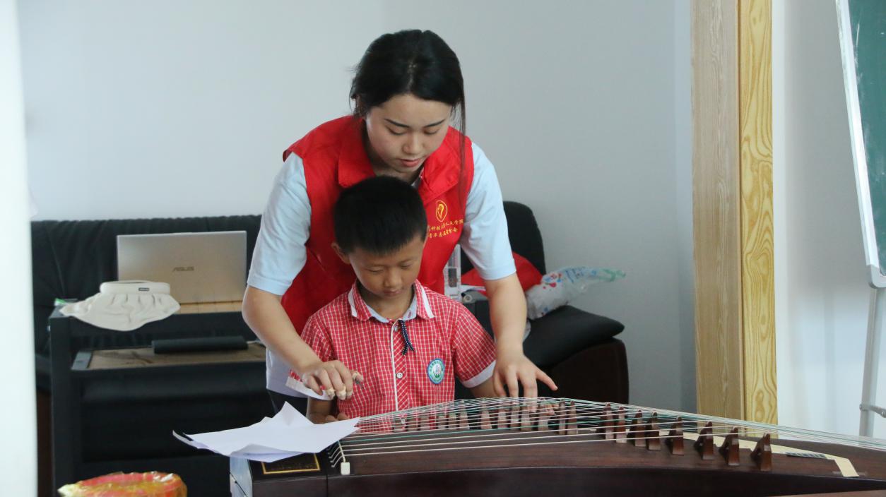 7月12日,株洲市攸县石羊塘镇谭家垅村高桥少儿假期公司内琴声悠扬,铮铮作响。球盟会暑期“三下乡”社会实践团队志愿者通过古筝弹唱以及普及有关古典音乐的知识,让同学们体会其音色美、艺术美,激发他们对于民族音乐的热爱,从而进一步弘扬中华民族传统文化,增强民族自信心和自豪感。