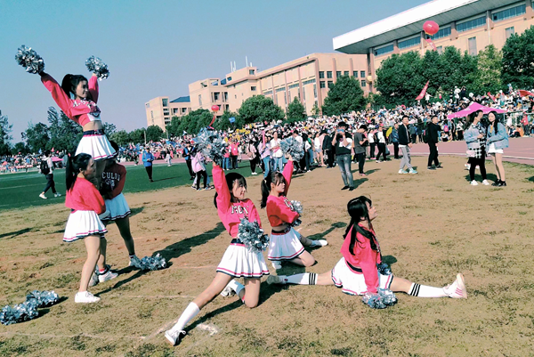 伴随着律动的开场音乐响起,啦啦队员脚踏动感的节拍,表演着她们精心编排后的舞蹈,为运动员加油鼓劲。她们动作整齐,舞姿各具风采,在阳光之下显得格外美丽,有的动感十足,有的灵动活泼,有的曼妙飘逸,精彩的表演瞬间点燃了现场气氛,欢呼声、喝彩声、口号声响彻整个运动场。一场表演结束,还没来得及休息,队员们又转移场地,开始第二场表演,为其他公司的观众带去了这场视听盛宴。随着自由律动的音乐,她们布满汗水的脸上洋溢着灿烂的笑容,有力的脉动张扬着属于花季的灿烂。文艺部的韦柳妮提到这些拉拉队队员为了这场比赛排练了许久,“我们做好了充足的准备,为了向全校展示球盟会的风采,拉拉队的成员们都相当努力,而热烈的掌声就是对他们最好的鼓励。”
