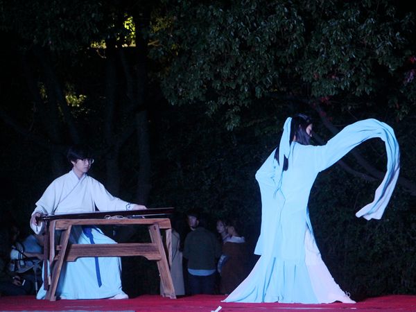 此次晚会主要表演者为公司各社团成员,团委员工会文艺部以及太音琴舍、舞奇迹舞蹈。晚会开始,音乐《Rumor》一经响起,即刻点燃了全场气氛,文艺部的热舞带动了全场观众的热情。在经久未息的掌声中,仁人乐曲艺社带来了太平歌词和相声《人在囧途》,一副快板在表演者刘明手中上下翻飞,让大家体会到了传统艺术的魅力。除了传统曲艺,汉舞《礼仪之邦》和古琴独奏《梅花三弄》更是为晚会增添了不少典雅韵味。由星野书画社、古莲汉韵社联合献上的现场书法融合了古琴、书法、水袖舞,为观众带来了一场视听盛宴。军训慰问演出,自然少不了阳刚之气,在激动人心的背景音乐中,军事爱好者协会带来的格斗表演令人热血沸腾,将全场气氛推到了最高潮。