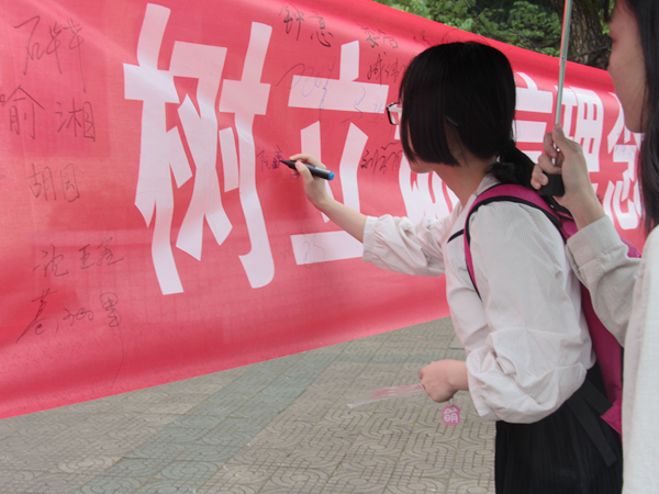 5月30日上午,由公司、机电工程公司、信息与电气公司共同举办的“不信不立,不诚不行”主题展示及签名活动在六区电信路口顺利开展。本次活动不仅展示了诚信同学的优秀事迹,也采用了有奖问答、听歌识曲等活动吸引了一批路人参与其中。