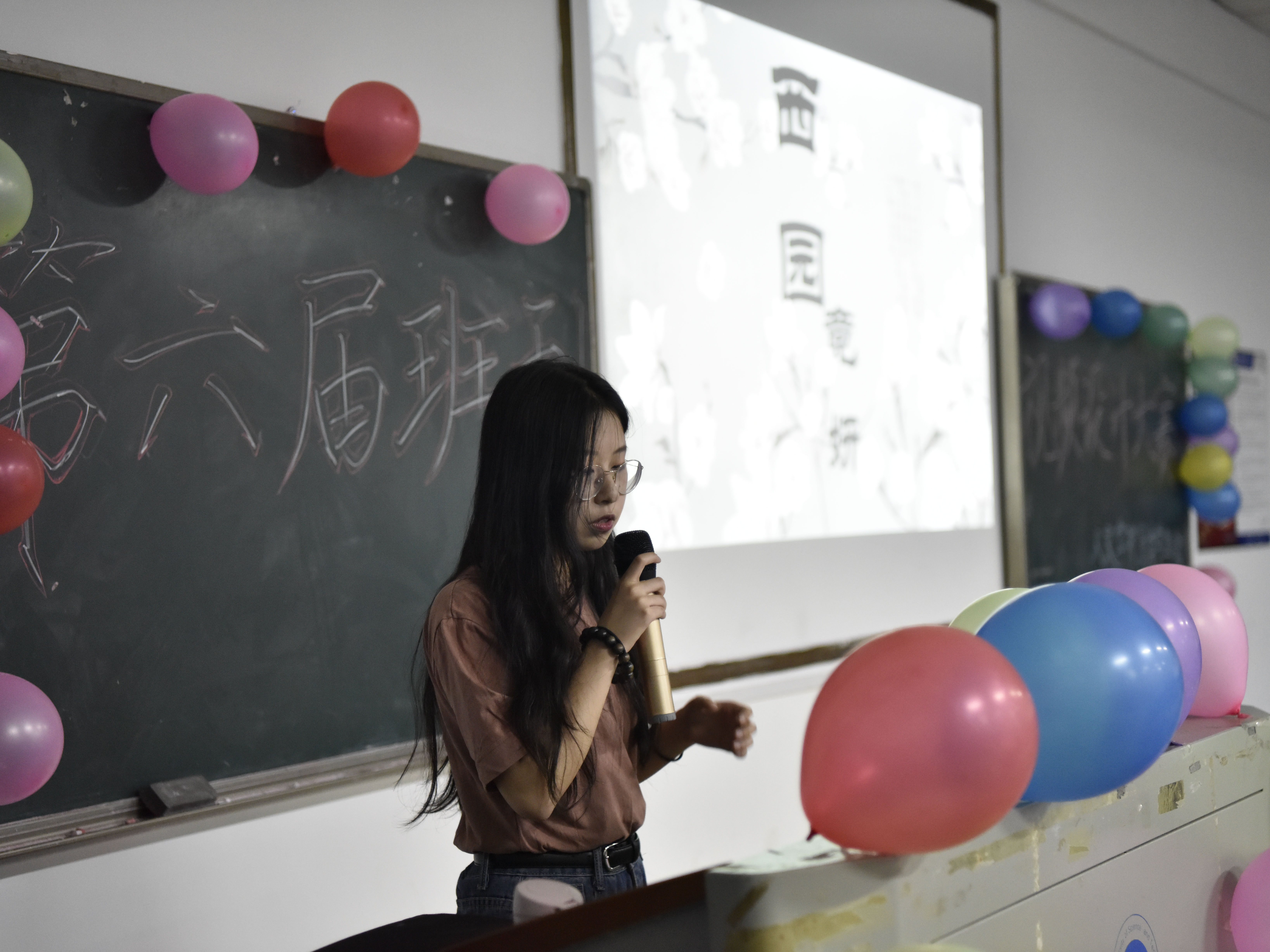 比赛在主持人宣布比赛规则后正式开始。现场座无虚席,各个班级经过一个月的精心准备,在决赛中将自己班级班刊最好的一面展示给大家。首先上场的是汉语言文学六班,讲解员刘晓纬用视频详细地阐述了班刊制作过程,并以“各取所长,分工合作”八个字道出文学六班班刊制作的“秘诀”。“我们班刊主要分为‘青春’和‘创造力’两部分,旨在传播青春正能量,体现文学创造力。”刘晓纬缓缓道来此次班刊的内涵。而历史二班讲解员邓佶翔则另辟蹊径,以幽默风趣的讲解赢得满场笑声,之后他一改风格,以深沉的嗓音向大家解释班刊主题“千忆千寻”的来源:“帮你追忆历史,探寻过往。”独具风格的宣讲博得了在场观众的笑声与阵阵欢呼喝彩。汉语言文学五班则以“小仙女”代指本班班刊,将班刊“推销”给大家。他以“独视者为民,独断着为聪”引出班刊主题“独视”。思想政治教育二班别出心裁,将专业名称融入班刊主题——树屿晨光,青简思政;广告专业的同学更是秉持着“广告不分家”,将班刊分为上下两册,带来崭新的视听体验。