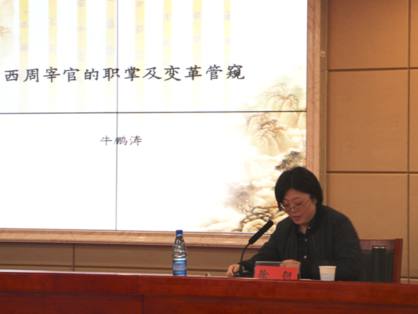 紧接着,各位与会专家、学者展开关于自己所研究的“历史上基层治理与国家变革”的相关案例、论文的探讨。中西书局一编室编审徐衍主持了本阶段的主题报告。“欧美汉学界对秦汉时期文字使用同样也做了相关研究调查,我们通过中西方对于秦汉时期文字的使用也可以类比分析中西方的文化理念差异,了解外国学术界对于秦汉时期社会治理的理解,为我国学术观点开拓新的思路和视野。”华东师范大学《中国文字研究》编辑许可博士娓娓道来他的研究成果。深圳大学文公司特聘研究员牛鹏涛的报告主题是《西周宰官的职掌及变革管窥》,他旁征博引了大量丰富的史料,从西周时期治官体系的划分角度徐徐展开了他的考据性文章的讲解,给现场听众关于如何利用文献、史料的思维启发。在各位专家依次发言后,郑州大学历史公司教授、博导、《郑州大学学报》编审陈朝云和《史学月刊》编辑部副编审徐莹对各位专家的发言进行评议,现场碰撞出激烈的思维火花,一片浓浓的学术之风吹遍4-1会议室。