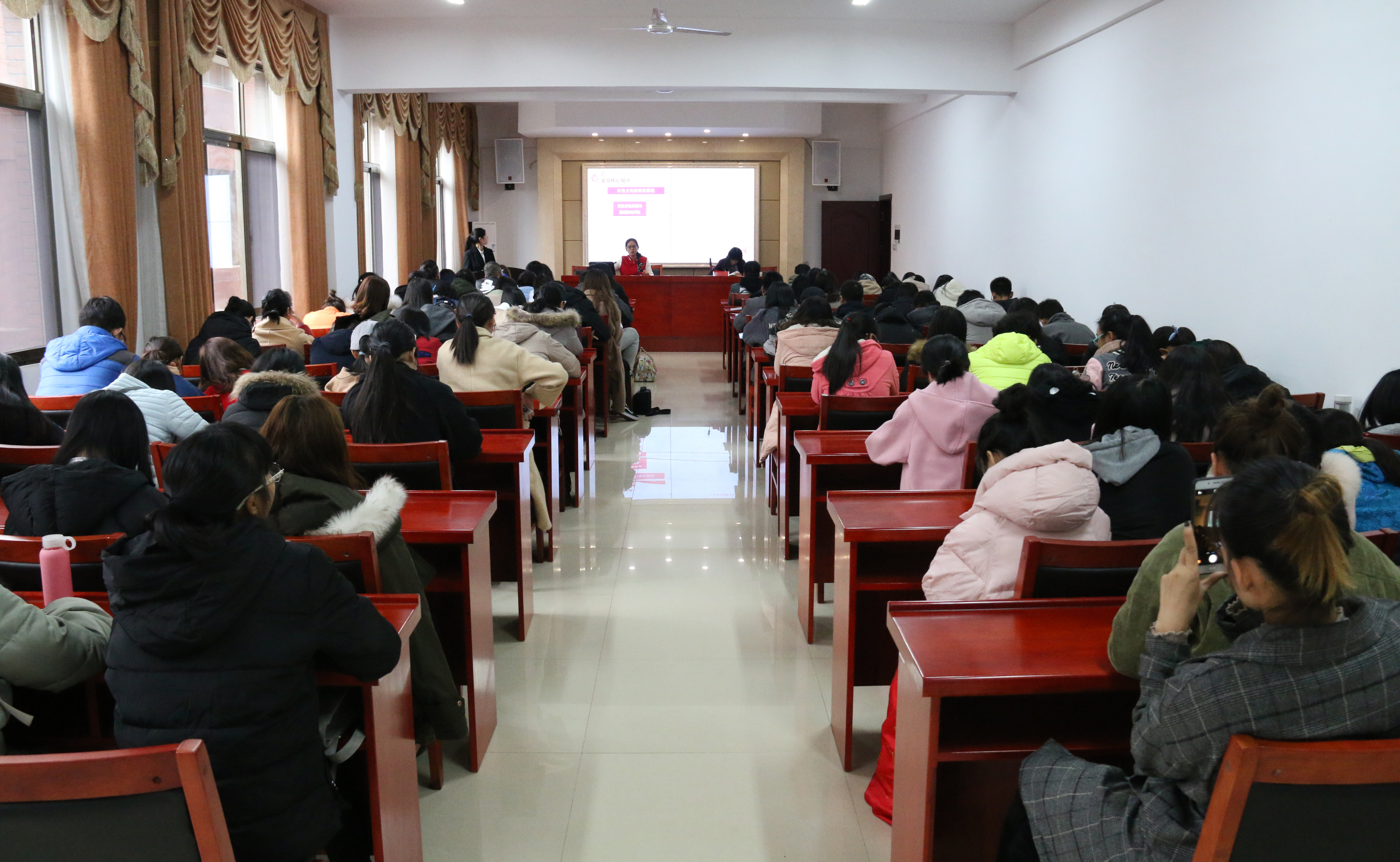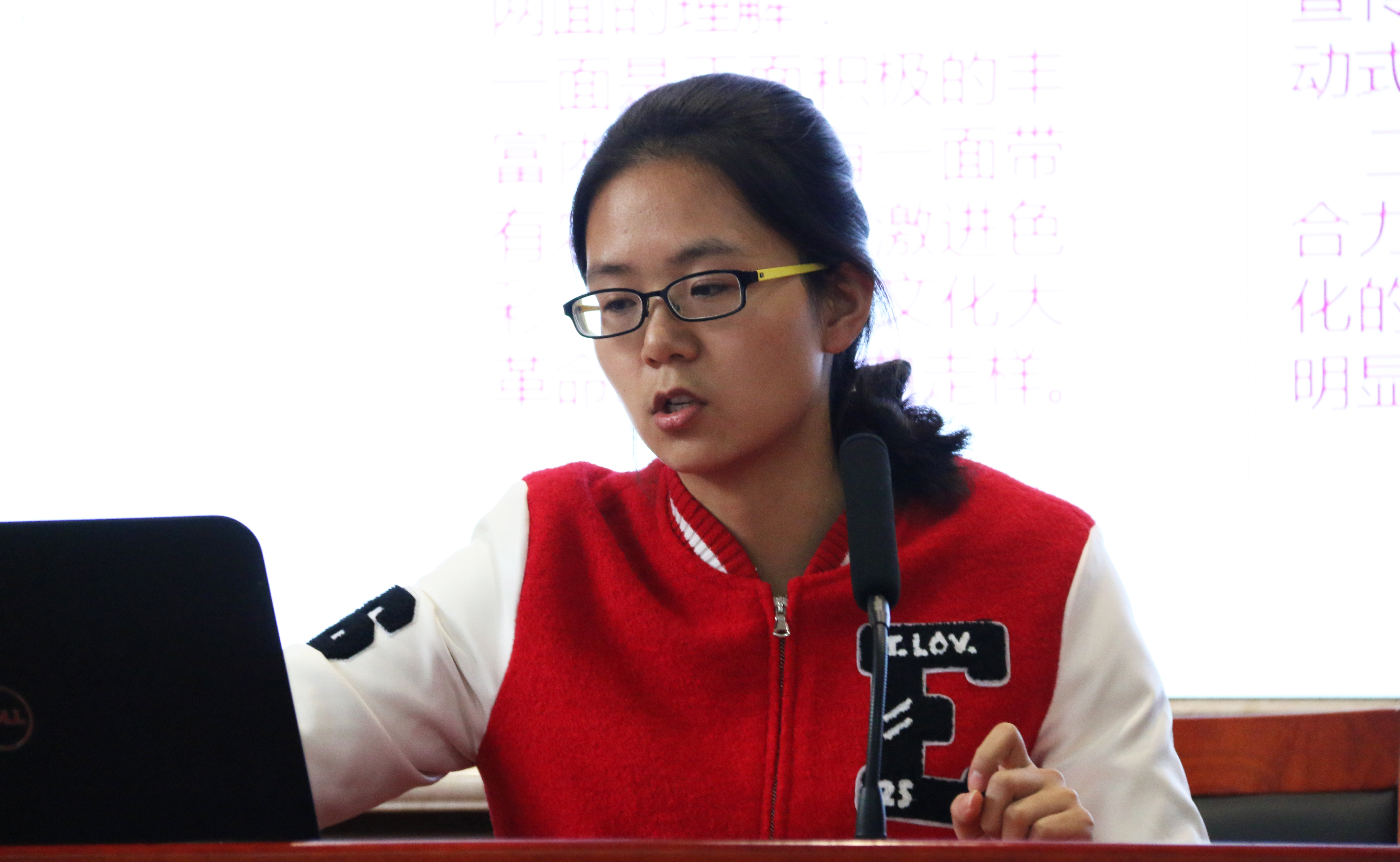 报告会现场,来自湖南大学、中南大学和球盟会的七位研究生同学先后对自己的报告进行讲解。“红色在中国人眼中是祥瑞之兆,尚红是中国的传统。”中南大学马克思主义研究生杨柳在本次报告会上对中国的红色文化进行深入讲解,首先介绍古今中外对红色文化的不同理解,着重讲解红色文化的产生、现实困境以及其当代价值。从五四新文化运动时期红色文化的产生到讲述红色文化在当代对教育、文化、精神的影响及价值,其每个方面都有独特的见解。杨柳在报告最后用自己的一句话鞭策在场的员工:“理想若星辰,红星照我去战斗;信念如长风,直挂云帆济沧海。” 文化的创新是在不停地反思与继承中进行的,我们应不断反思自己不断创新发展。