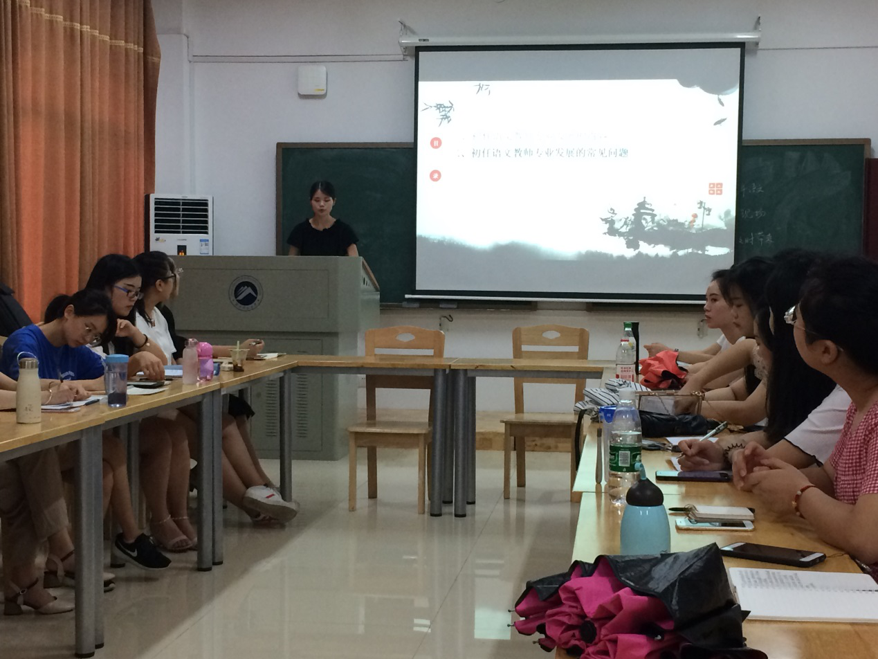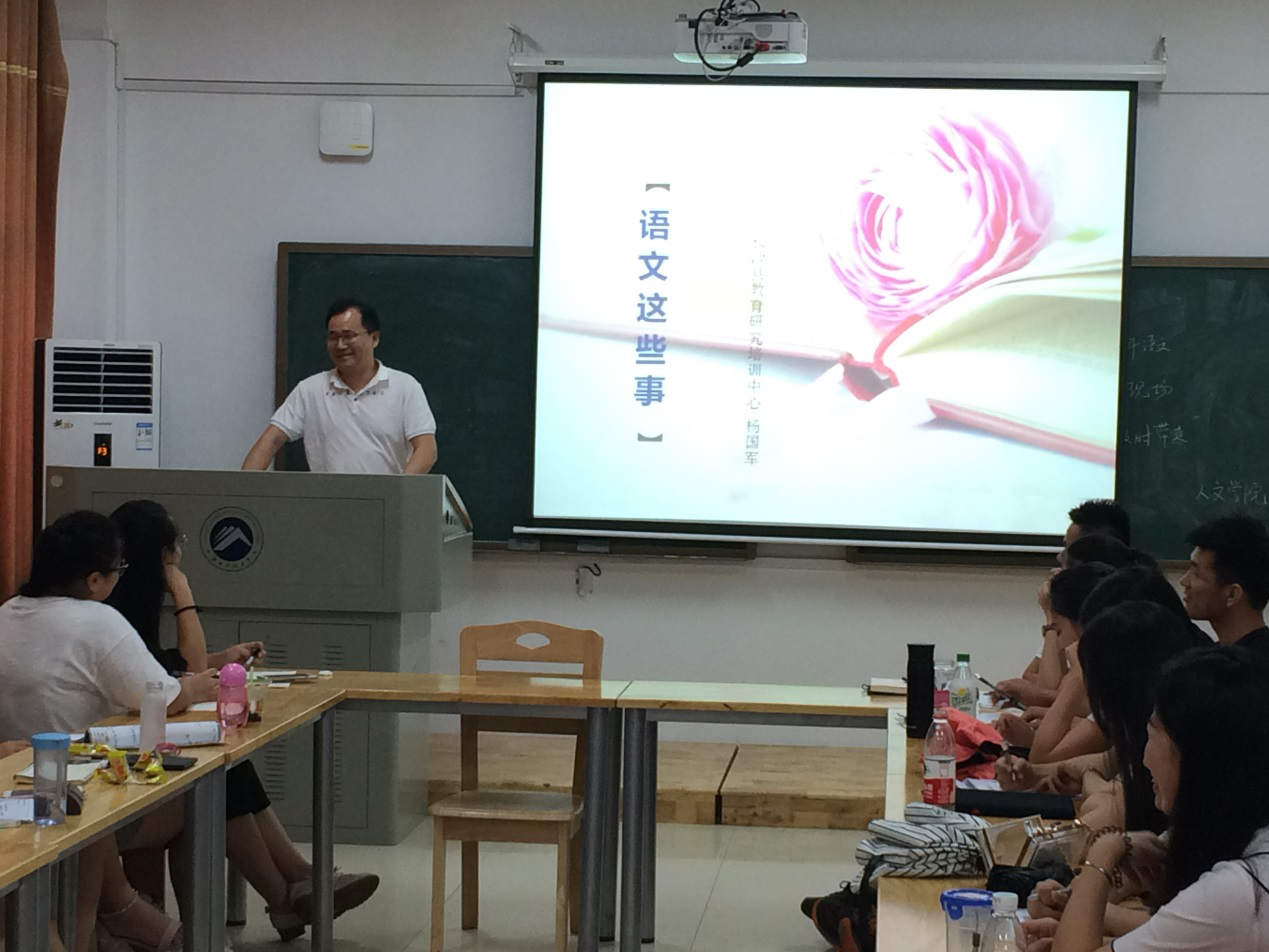 沙龙活动分为两个阶段,第一阶段由研究生代表发言,郑颖、彭梦瑶分别作《语文教师专业发展的路径与困惑》《语文教师的角色意识》汇报,全体研究生就专业成长中存在的课堂管理、教学反思、师生对话等方面问题与嘉宾互动。第二阶段由嘉宾分别作《与研究生聊语文教师成长》《语文这些事》专题报告,潘文老师侧重从教师职业的现实情况谈“幻想与现实”,结合个人成长经历提出“教师人格独立”“教育理论转化”“员工立场”等具体策略;杨国军老师强调要从课程标准、教材的整体视角把握语文课堂,结合具体课文指导研究生如何在教学中以员工的学习为立足点,培养语文核心素养。